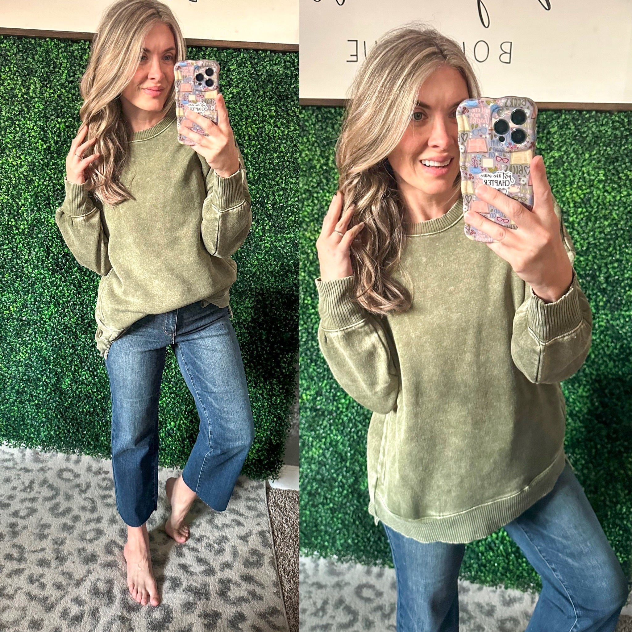 Safe and Secure Mineral Wash Pullover in Light Olive