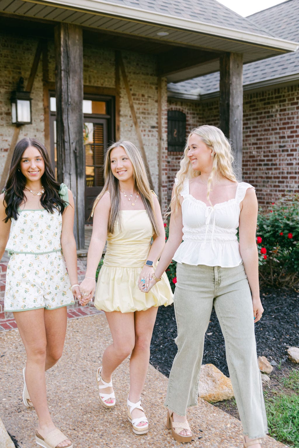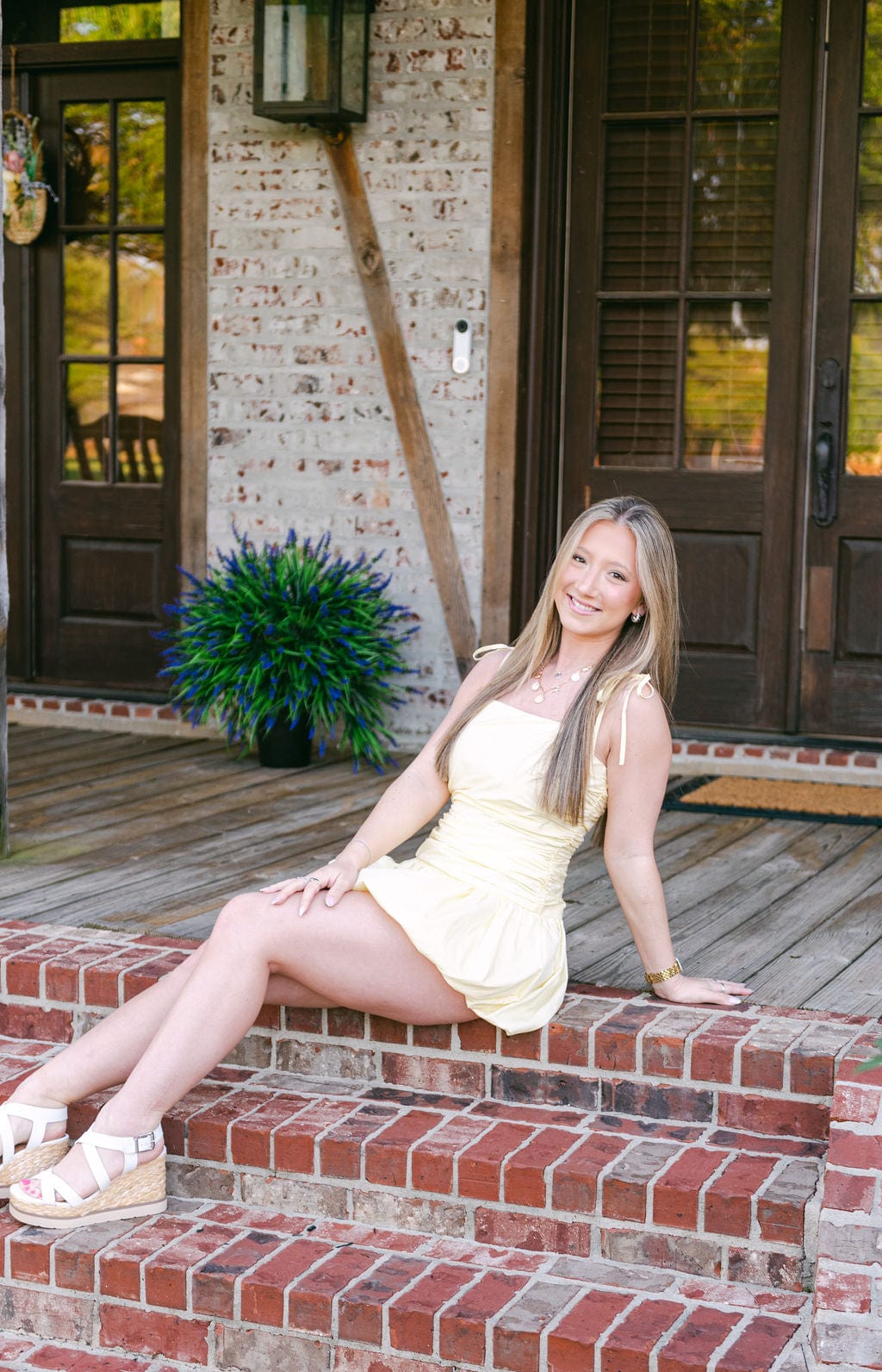 Effortlessly chic and oh-so-sweet. our Yellow Shoulder Tie Bubble Hem Dress will have you feeling like a breath of fresh Spring air. The pale yellow hue and shoulder tie straps add a playful touch. while the square neckline and bubble hem create a flattering silhouette. Perfect for mini dress lovers. with a drop waist and back zip closure for easy wear. Get ready to turn heads in this must-have dress!