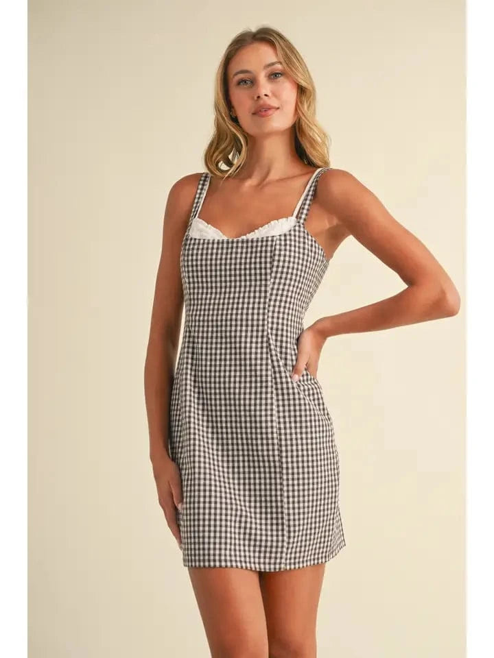 Brown Checkered Sweetheart Mini Dress