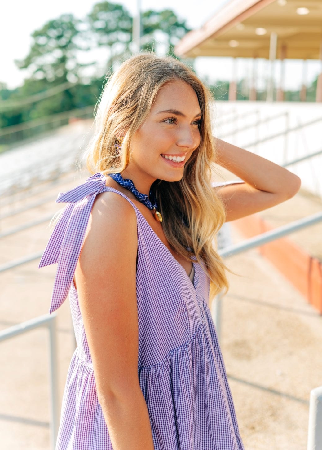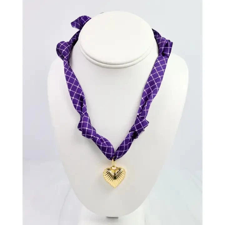 Elevate your LSU gameday look with this stunning purple satin scarf necklace. featuring a charming heart detail. Soft and lightweight. it adds a touch of elegance while showing your team spirit. Perfect for game day or everyday wear. this accessory combines comfort and style effortlessly.