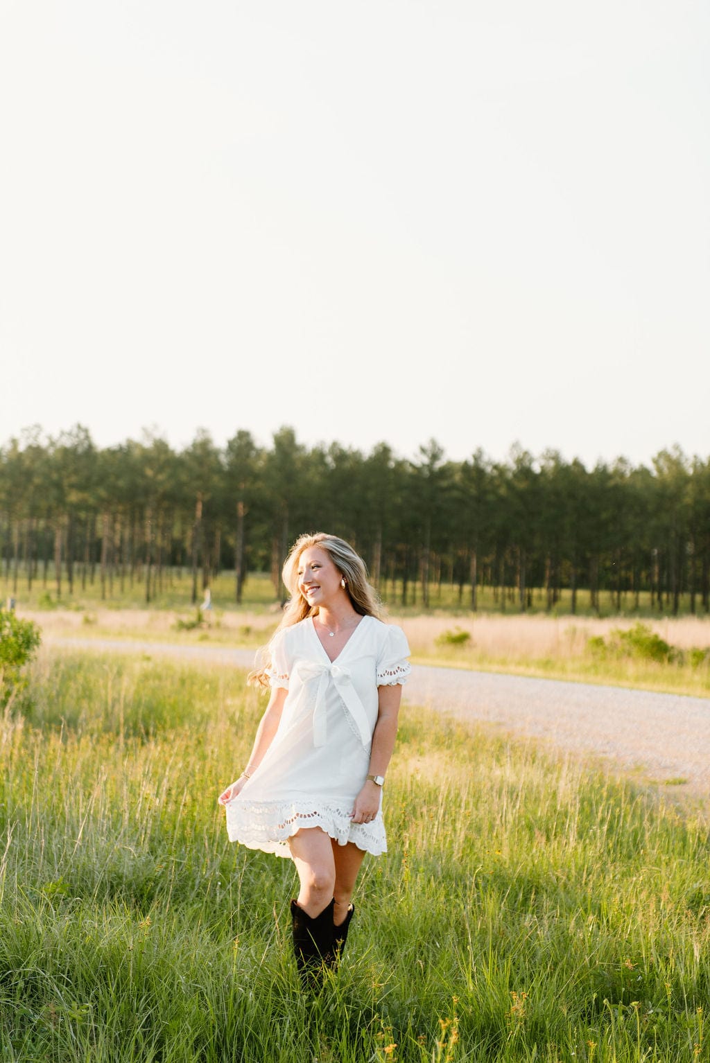 White Eyelet Lace Bow Front Dress